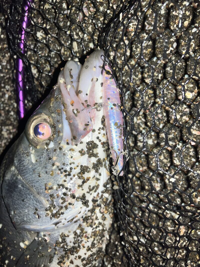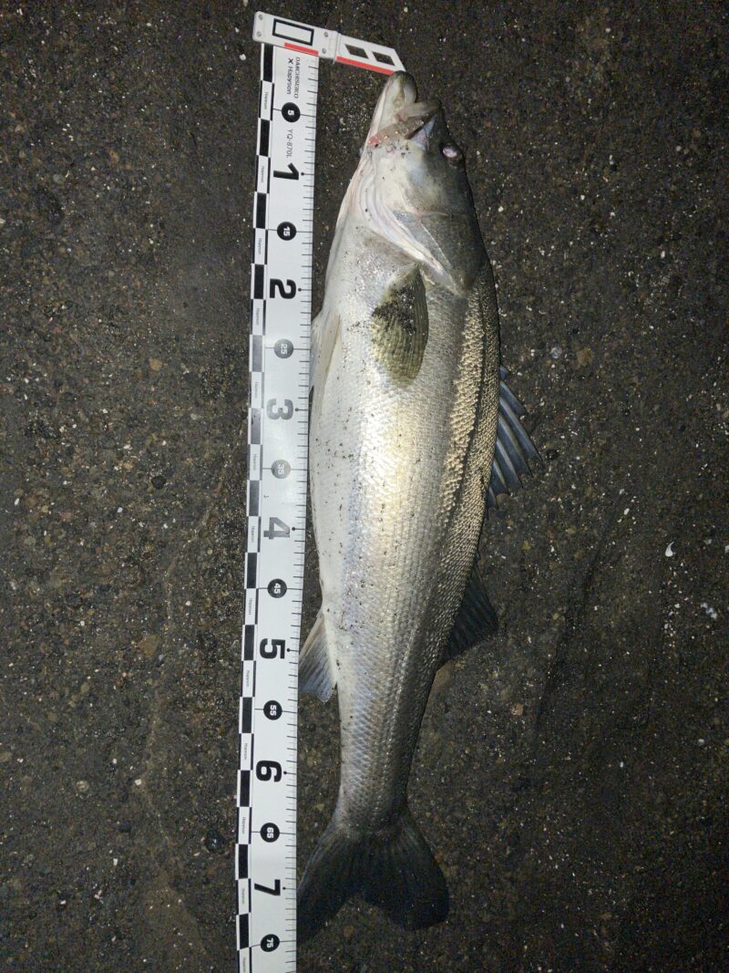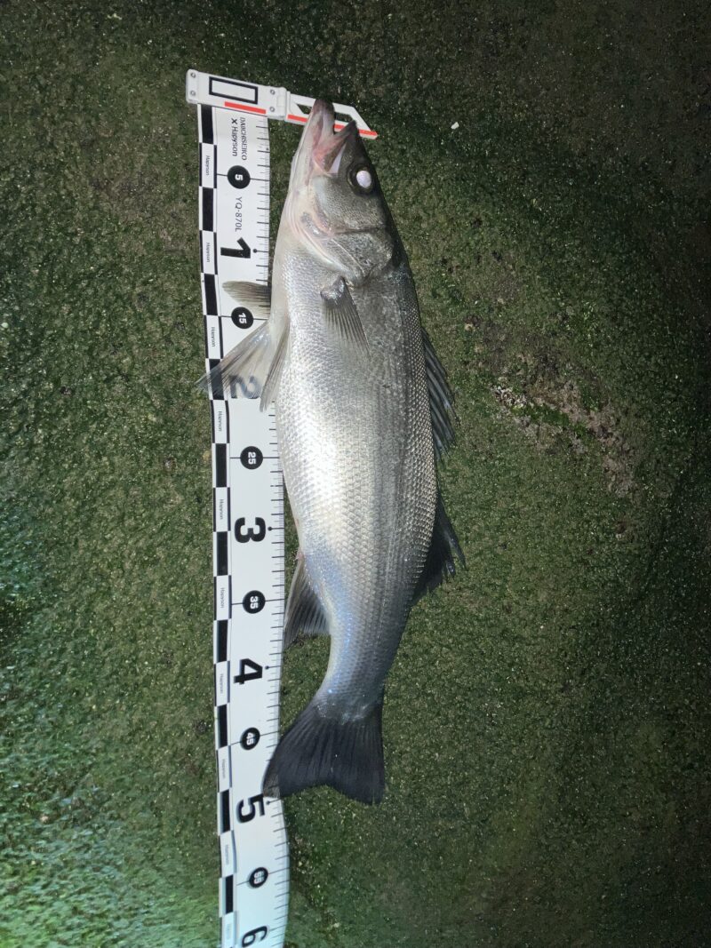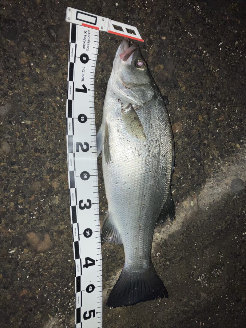 最初に釣り上げたヒラスズキと同じぐらいのサイズの個体!