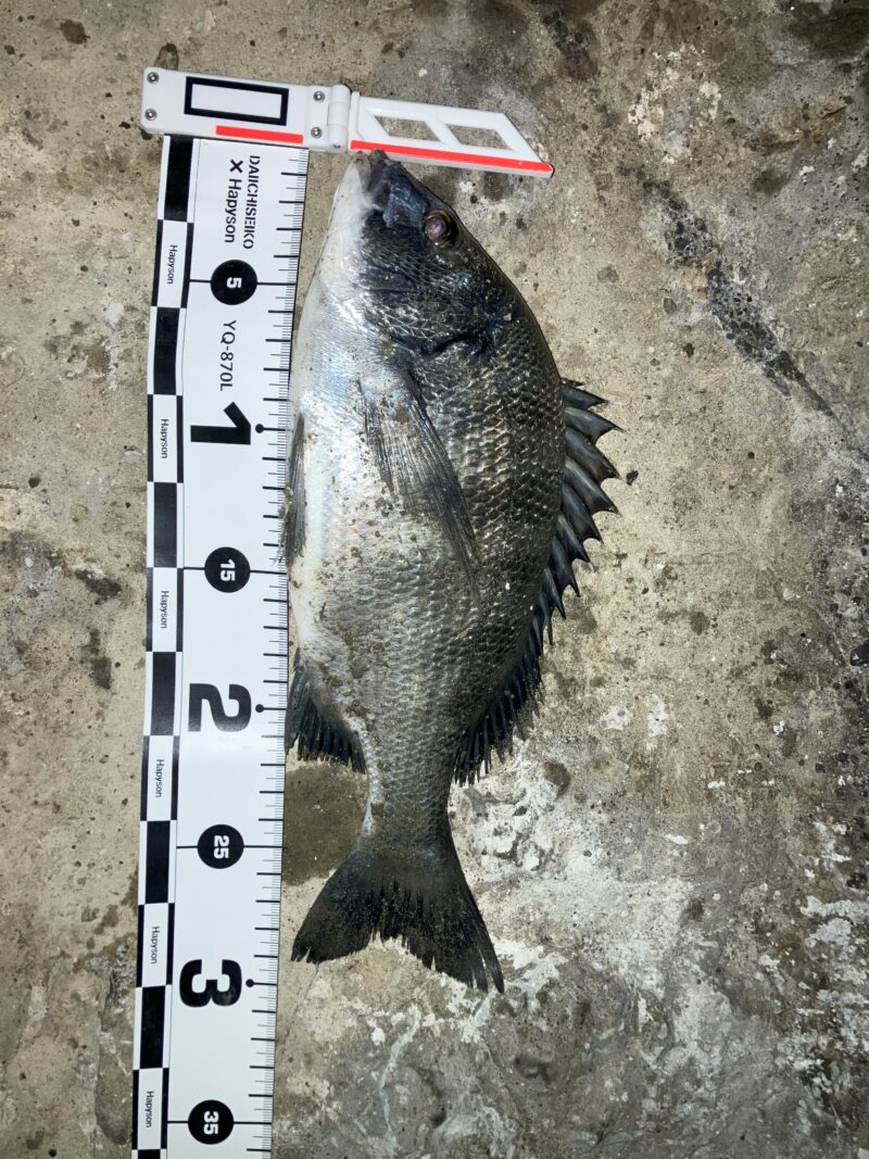 少し小さいですが、このサイズのクロダイは40センチ以上のクロダイと比べると
