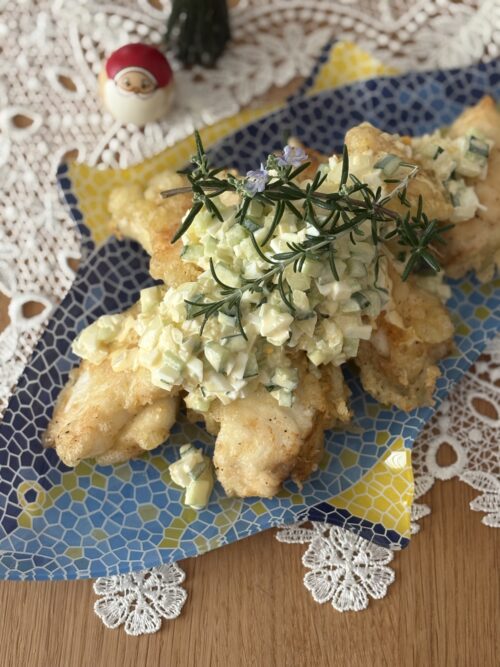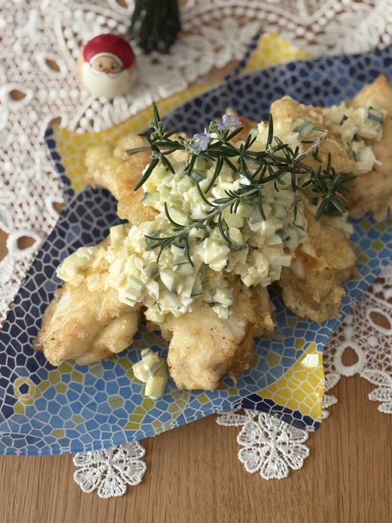 レシピ②マルスズキの炭酸衣フライ 野菜のタルタルソース