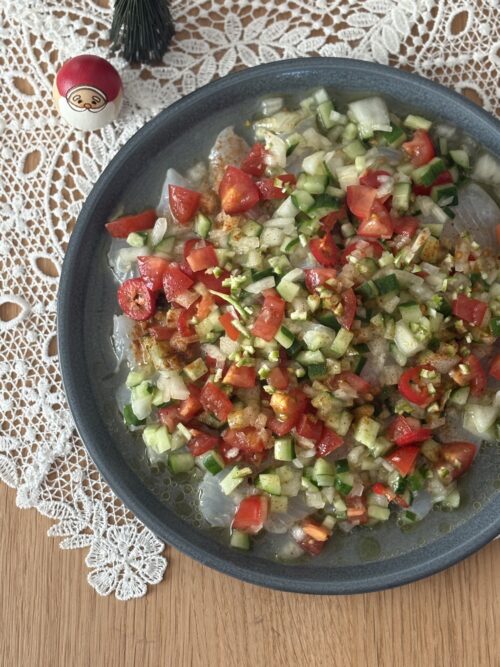 レシピ①ヒラスズキのカルパッチョ 野菜のソース
