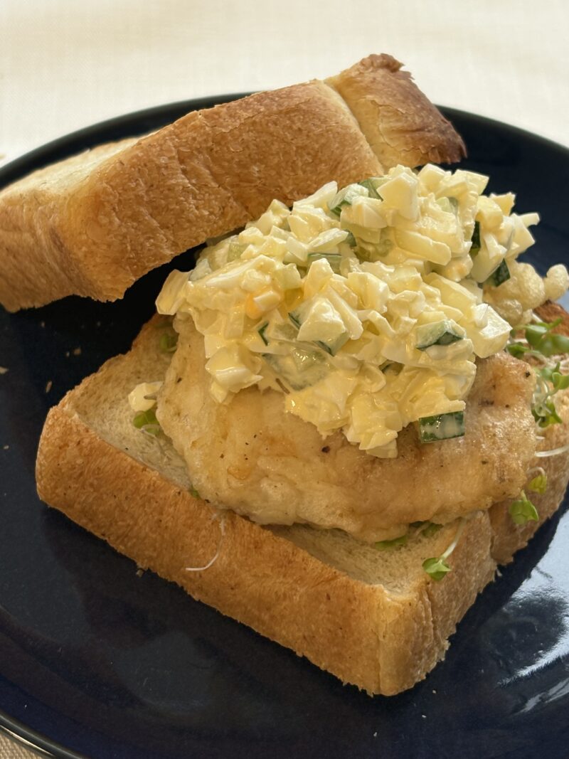 マルスズキの炭酸衣フライを挟んでサンドウイッチに♪